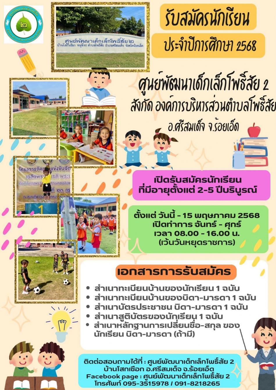 ศพด.โพธิ์สัย 2 สังกัด องค์การบริหารส่วนตำบลโพธิ์สัย เปิดรับสมัครนักเรียน[8 พฤศจิกายน 2568]