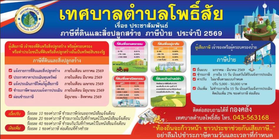 ประชาสัมพันธ์ ภาษีที่ดินและสิ่งปลูกสร้าง และภาษีป้าย ประจำปี พ.ศ. 2569