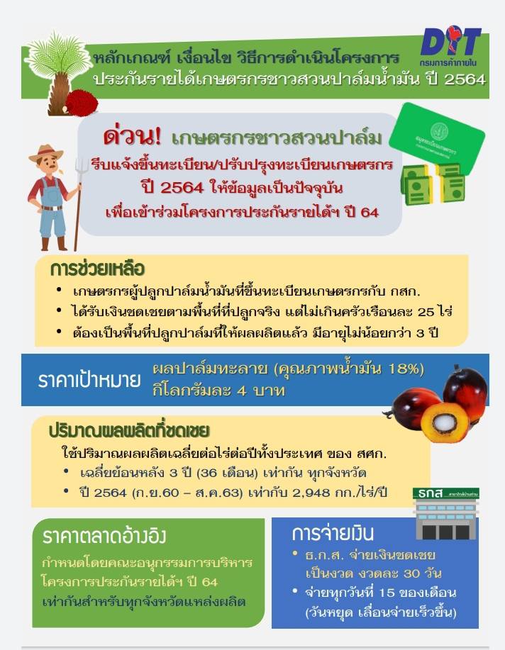 โครงการประกันรายได้เกษตรกรชาวสวนปาล์มน้ำมัน ปี่ ๒๕๖๔