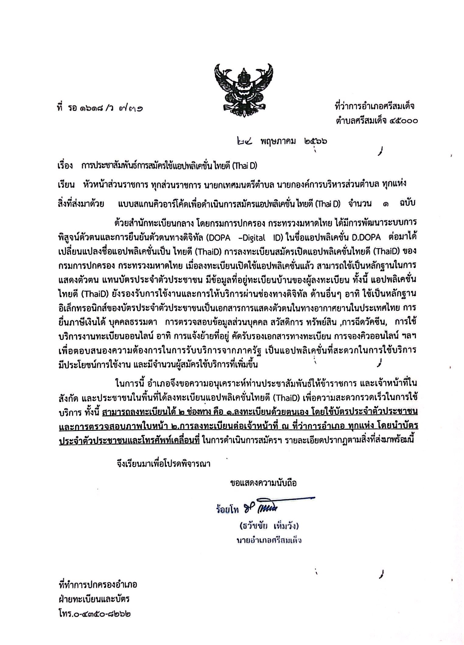 การประชาสัมพันธ์การสมัครใช้แอปพลิเคชั่นไทยดี (Thai D)