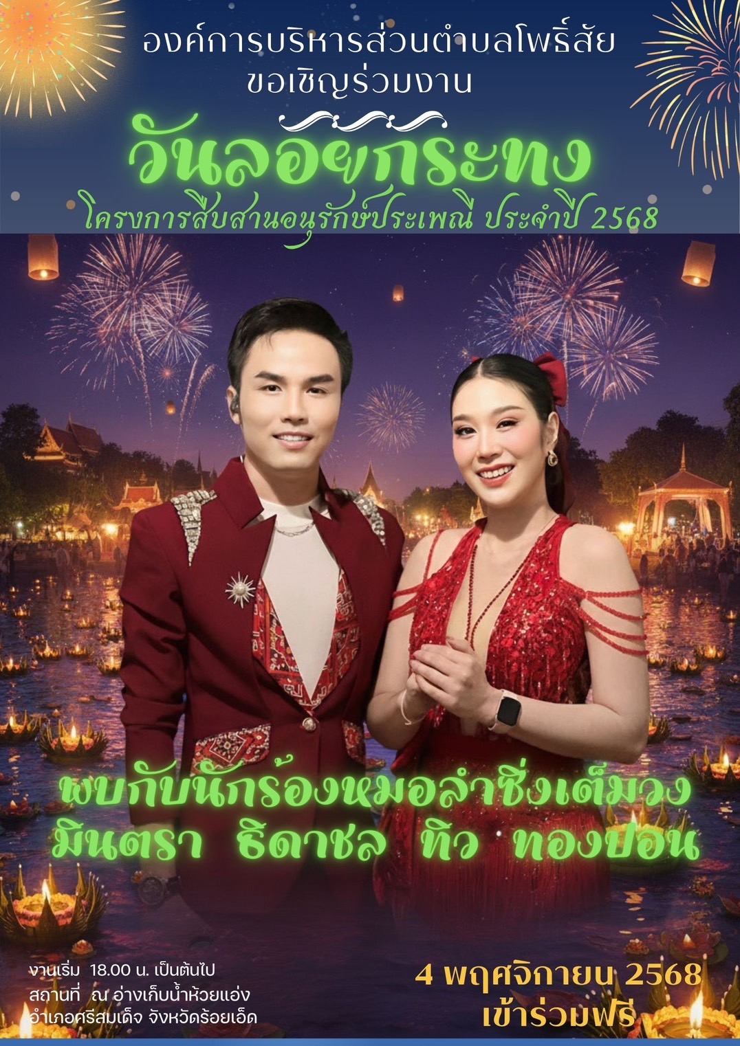 ชื่อเรื่อง : เชิญชวนร่วมงานอนุรักษ์สืบสานประเพณีวัฒนธรรมไทย ประจำปี 2568 วันลอยกระทง