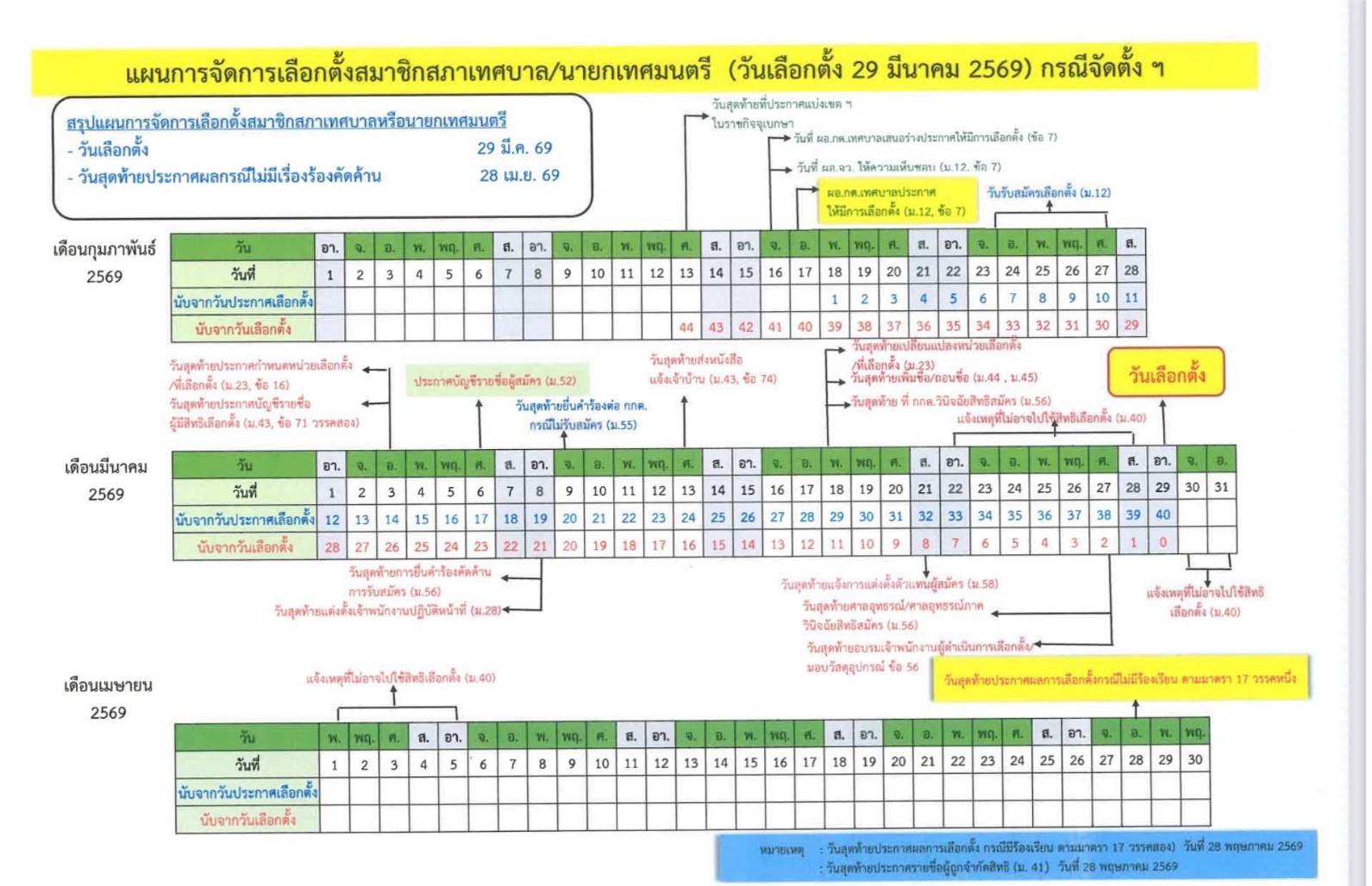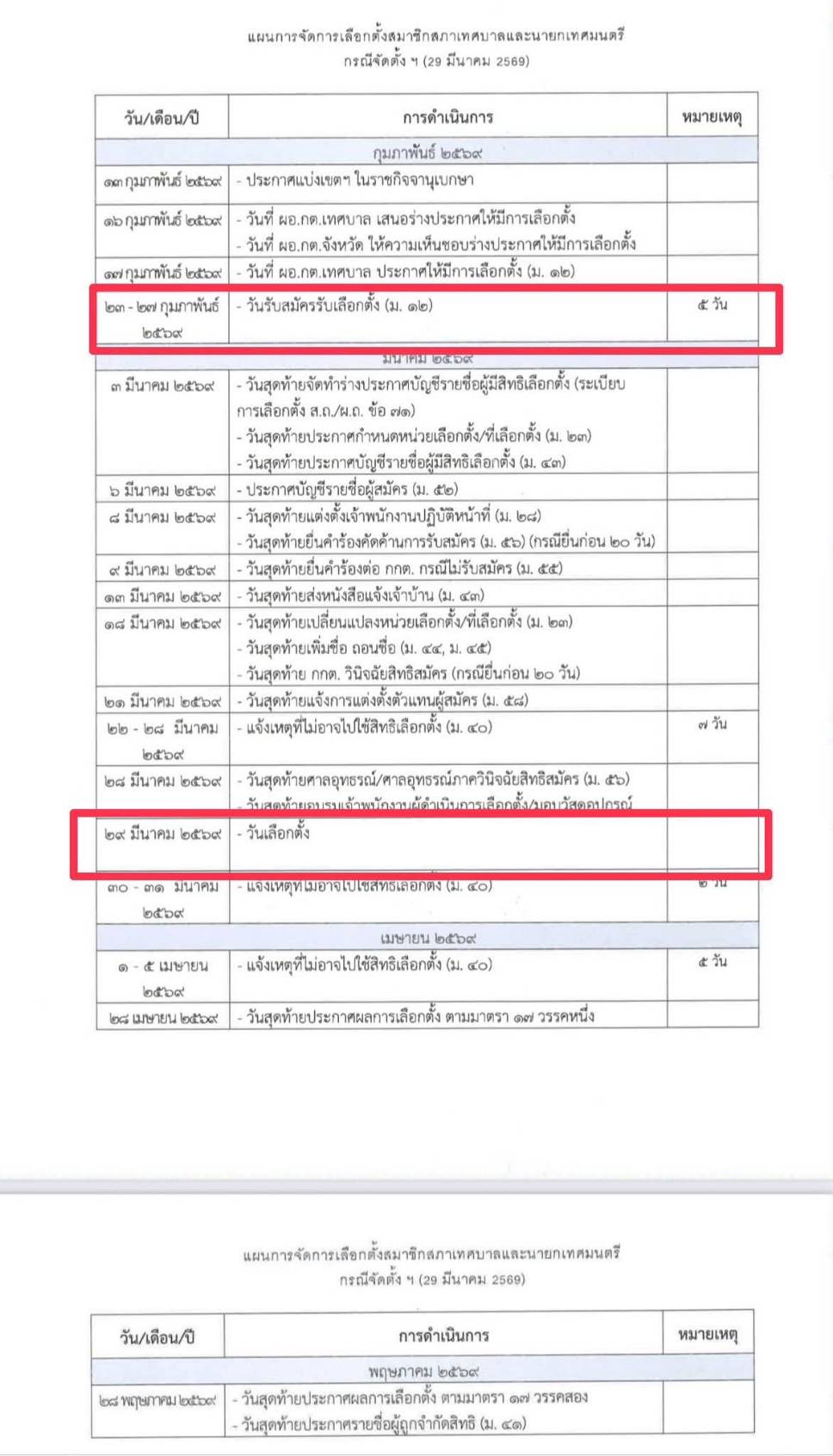 แผนการจัดการเลือกตั้งสมาชิกสภาเทศบาลและนายกเทศมนตรี กรณีจัดตั้ง (29 มีนาคม 2569)