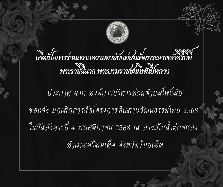 ประกาศแจ้ง ยกเลิก การจัดโครงการสืบสานประเพณีวัฒนธรรไทย (ลอยกระทง) 2568[27 ตุลาคม 2568]